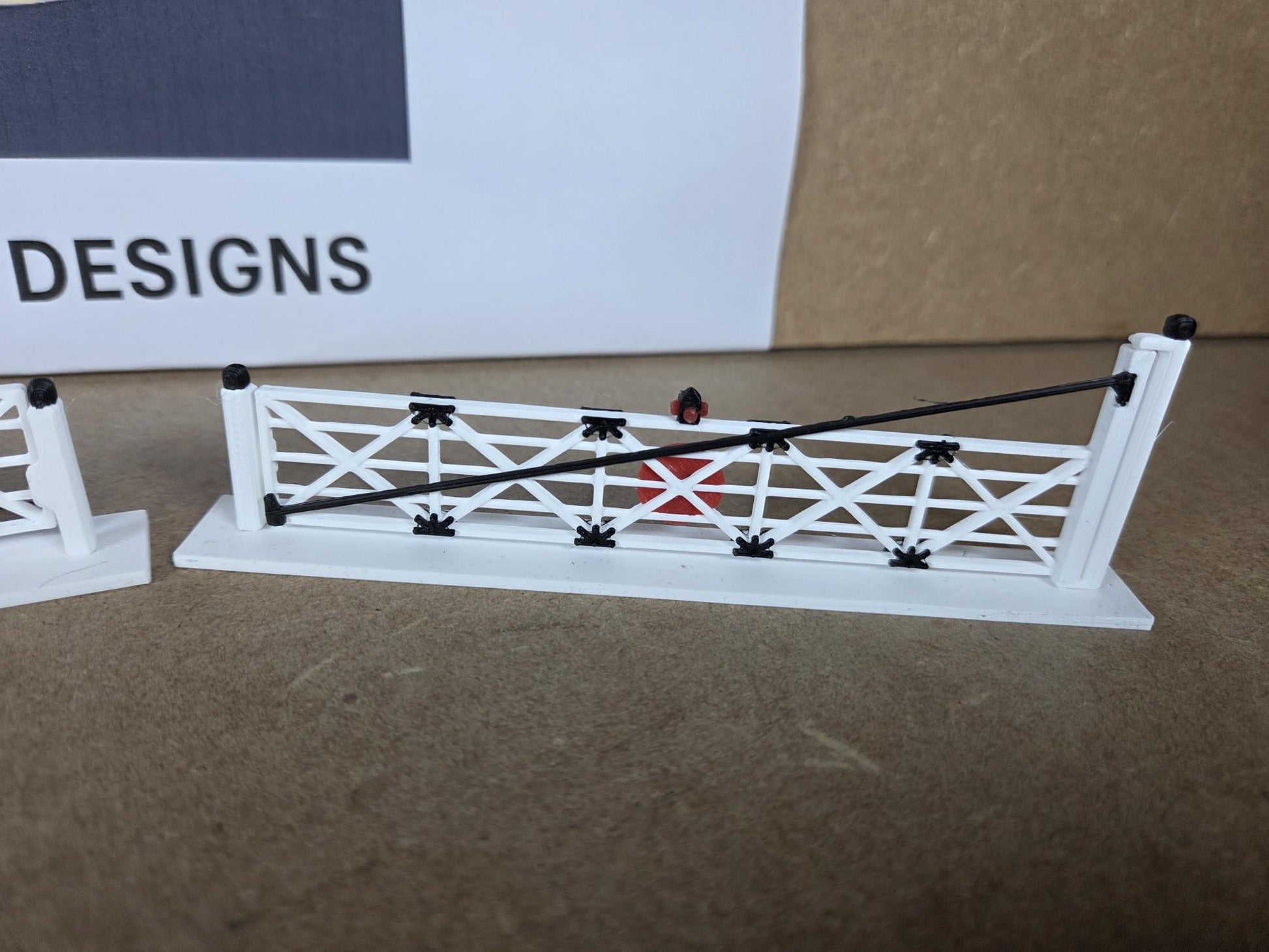 00 GAUGE WIDE LEVEL CROSSING GATES 3D PRINTED IN BLACK AND WHITE.